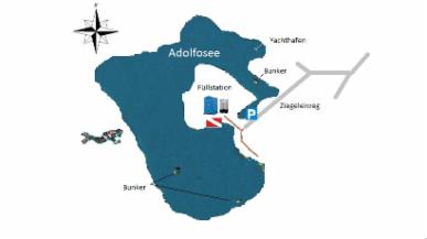 Am See ist eine Plattform durch den ortsansässigen Verein installaliert worden, Tiefe ca. 7m.