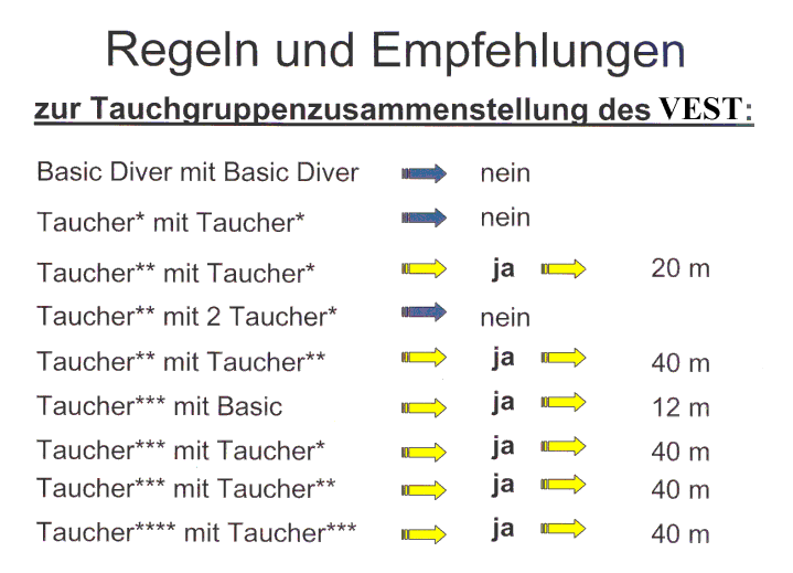 In der Ausbildung werden die Tauchschüler in Theorie und Praxis schrittweise an das Tauchen herangeführt und in der Bewältigung unerwartet auftretender Probleme wie z. B. Verlust eines Ausrüstungsgegenstandes geschult.
